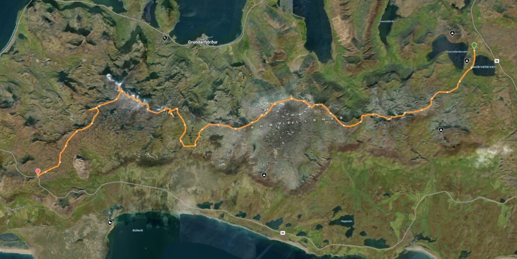 Við hittumst á bílastæðinu við Selvallafoss. Þaðan keyrum við í suður Vatnaleiðina (u.þ.b. 3 km) og beygjum útaf til móts við Hraunsfjarðarvatn og á upphafsstað. Við göngum í átt að Baulárvallavatni og meðfram því áður en við færum okkur yfir að Hraunsfjarðarvatni og klárum hringinn aftur að bílunum